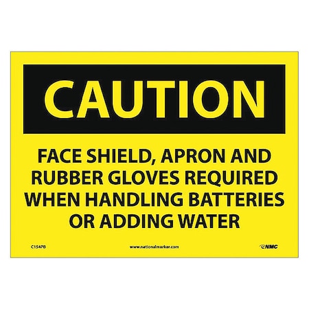 NMC C154PB CAUTION FACE SHIELD AND RUBBER GLOVES REQUIRED WHEN HANDLING BATTERIES OR ADDING WATER Sign – 14 in. x 10 in. 6 Hour Glow Polyester Caution Sign