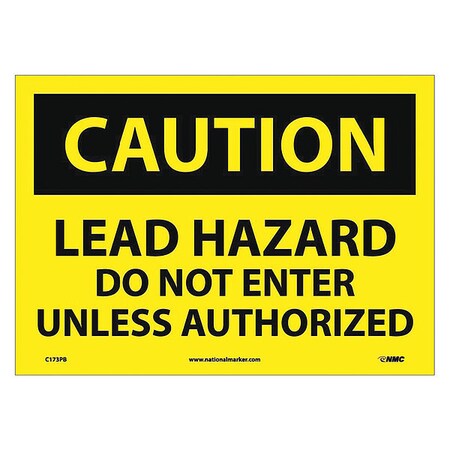 NMC C173PB OSHA Sign, Legend "CAUTION - LEAD HAZARD DO NOT ENTER UNLESS AUTHORIZED", 14" Length x 10" Height, Pressure Sensitive Vinyl, Black on Yellow