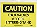 - Header "CAUTION" and legend "LOCK VALVES BEFORE ENTERING TANKS"