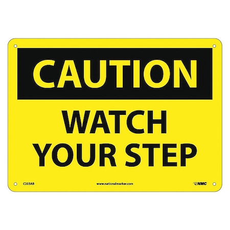 NMC C203AB OSHA Sign, Legend "CAUTION - WATCH YOUR STEP", 14" Length x 10" Height, Aluminum, Black on Yellow
