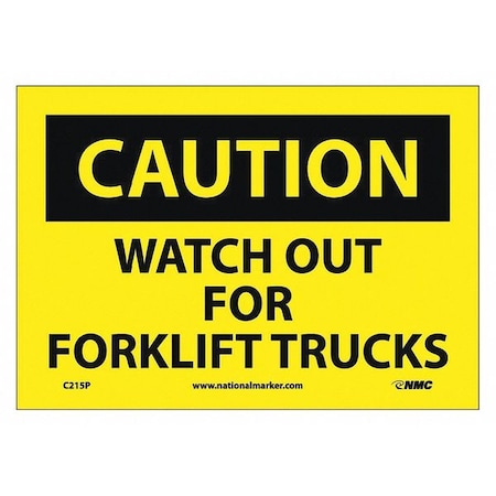 NMC C215P CAUTION - WATCH OUT FOR FORK LIFT TRUCKS – 10 in. x 7 in. PS Vinyl Caution Sign with Yellow/Black Text on Black/Yellow Base