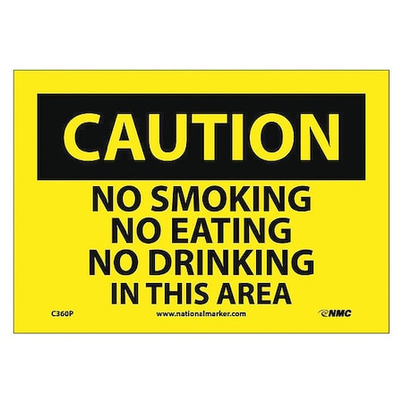 NMC C360P CAUTION - NO SMOKING NO EATING NO DRINKING IN THIS AREA Sign - 10 in. x 7 in., Black Text on Yellow, PS Vinyl Caution Sign