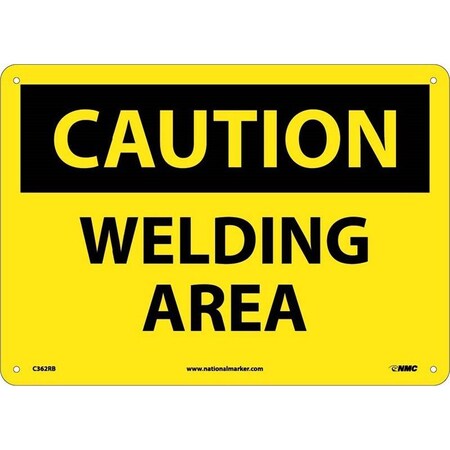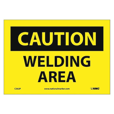 NMC C362P OSHA Sign, Legend "CAUTION - WELDING AREA", 10" Length x 7" Height, Pressure Sensitive Adhesive Vinyl, Black on Yellow