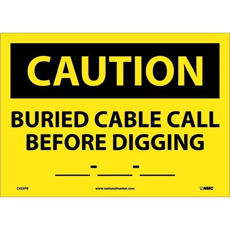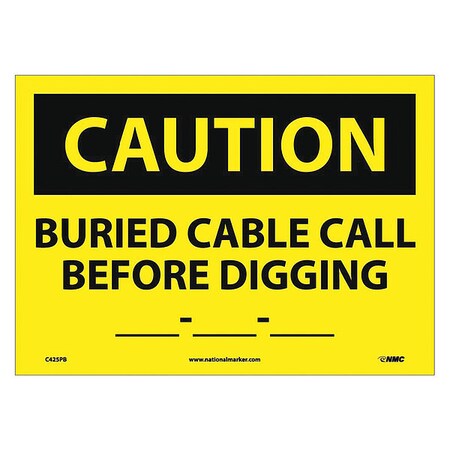 NMC C425PB OSHA Sign, Legend "CAUTION - BURIED CABLE CALL BEFORE DIGGING __-__-__", 14" Length x 10" Height, Pressure Sensitive Adhesive Vinyl, Black on Yellow