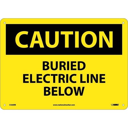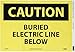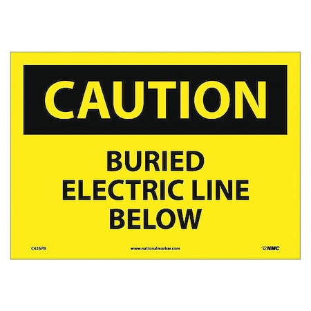 NMC C426PB OSHA Sign, Legend "CAUTION - BURIED ELECTRIC LINE BELOW", 14" Length x 10" Height, Pressure Sensitive Adhesive Vinyl, Black on Yellow
