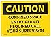 - Header "CAUTION" and legend "CONFINED SPACE ENTRY PERMIT REQUIRED CALL YOUR SUPERVISOR"