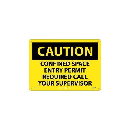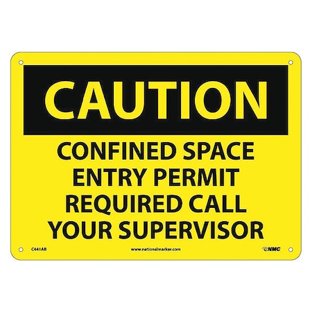 NMC C441AB OSHA Sign, Legend "CAUTION - CONFINED SPACE ENTRY PERMIT REQUIRED CALL YOUR SUPERVISOR", 14" Length x 10" Height, Aluminum, Black on Yellow