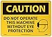 - Header "CAUTION" and legend "DO NOT OPERATE THIS MACHINE WITHOUT EYE PROTECTION" with Graphic