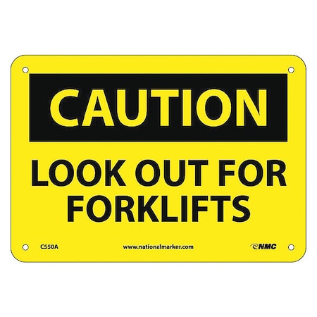 NMC C550A OSHA Sign, Legend "CAUTION - LOOK OUT FOR FORKLIFTS", 10" Length x 7" Height, Aluminum, Black on Yellow