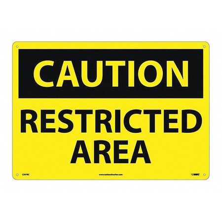 NMC C597RC OSHA Sign, Legend "CAUTION - RESTRICTED AREA", 20" Length x 14" Height, Rigid Plastic, Black on Yellow