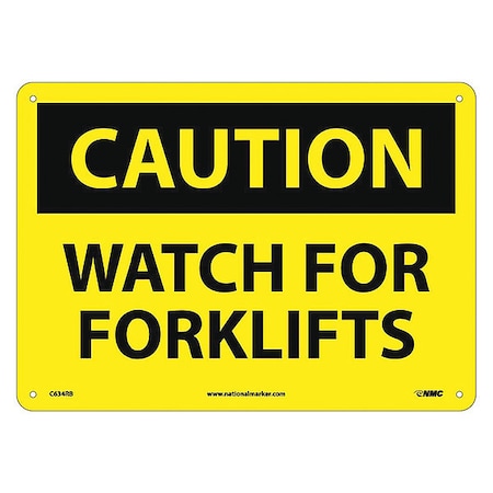 NMC C634RB OSHA Sign, Legend "CAUTION - WATCH FOR FORKLIFTS", 14" Length x 10" Height, Rigid Plastic, Black on Yellow