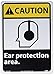 | Feature | Header "CAUTION" and Legend "Ear protection area." with Graphic |