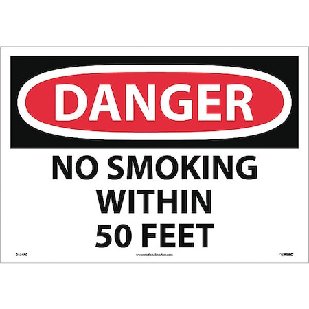 NMC D124PC OSHA Sign, Legend "DANGER - NO SMOKING WITHIN 50 FEET", 20" Length x 14" Height, Pressure Sensitive Vinyl, Black/Red on White