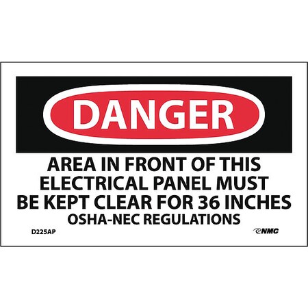 NMC D225AP Danger - Area in Front of This Electrical Panel Must Be Kept Clear for 36 Inches OSHA-NEC Regulations Label - 5 in. x 3 in. PS Vinyl Danger Label,White