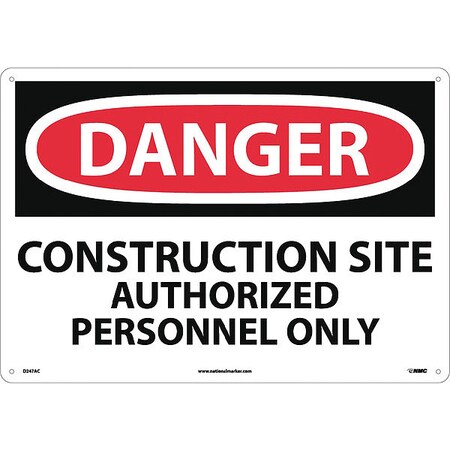 NMC D247AC OSHA Sign, Legend "DANGER - CONSTRUCTION SITE AUTHORIZED PERSONNEL ONLY", 20" Length x 14" Height, Aluminum, Red/Black on White