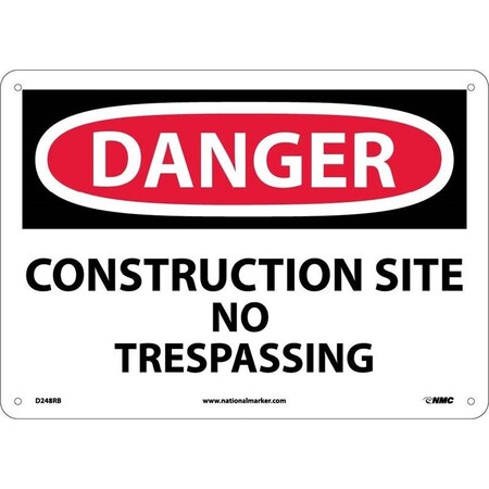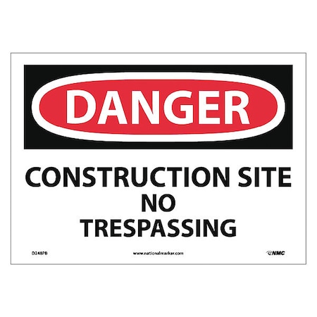 NMC D248PB DANGER - CONSTRUCTION SITE NO TRESPASSING Sign - 14 in. x 10 in. PS Vinyl Danger Signage, Black/White Text on White/Red Base