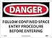 | Feature | Header "DANGER" and Legend "FOLLOW CONFINED SPACE ENTRY PROCEDURE BEFORE ENTERING" |