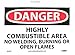 - Header "DANGER" and Legend "HIGHLY COMBUSTIBLE AREA NO WELDING, BURNING OR OPEN FLAMES"