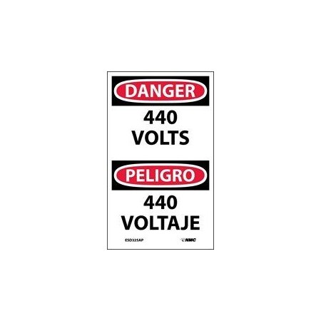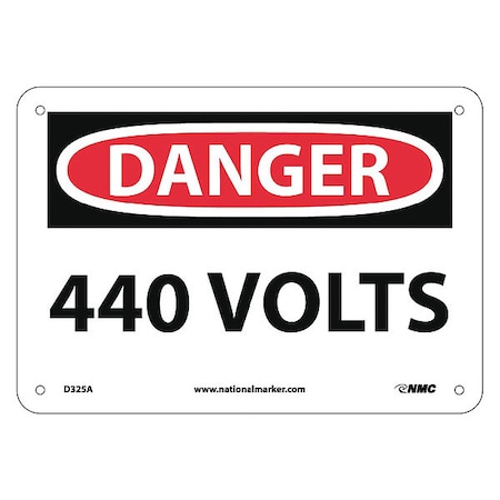 NMC D325A OSHA Sign, Legend "DANGER - 440 VOLTS", 10" Length x 7" Height, 0.040 Aluminum, Black/Red on White