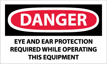 - Header "DANGER" and Legend "EYE AND EAR PROTECTION REQUIRED WHILE OPERATING THIS EQUIPMENT"