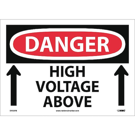 NMC D550PB OSHA Sign, Legend "DANGER - HIGH VOLTAGE ABOVE" with Up Arrow Graphic, 14" Length x 10" Height, Pressure Sensitive Adhesive Vinyl, Black/Red on White