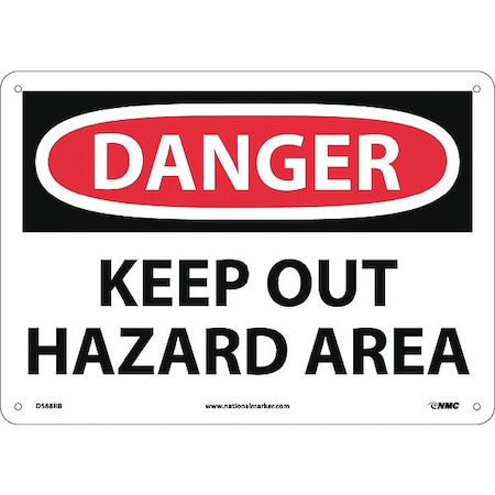 NMC D568RB DANGER - KEEP OUT HAZARD AREA Sign - 14 in. x 10 in. rigid Plastic Danger Sign, Black/White Text on White/Red Base