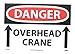 | Feature | Header "DANGER" and legend "OVERHEAD CRANE" with graphic |