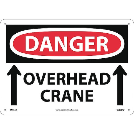 NMC D596AB OSHA Sign, Legend "DANGER - OVERHEAD CRANE" with Graphic, 14" Length x 10" Height, Aluminum, Black/Red on White