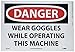 | Feature | Header "DANGER" and legend "WEAR GOGGLES WHILE OPERATING THIS MACHINE" |