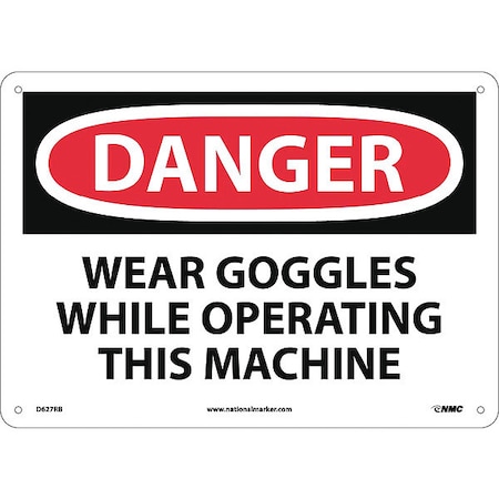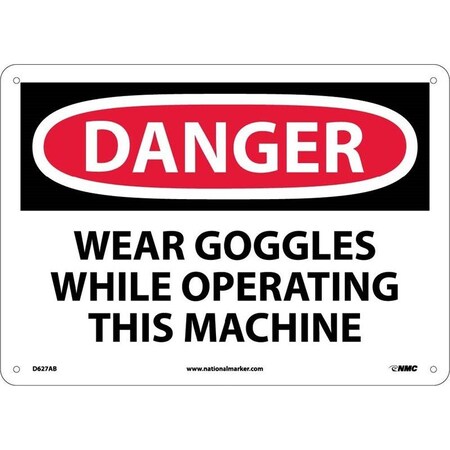 NMC D627RB OSHA Sign, Legend "DANGER - WEAR GOGGLES WHILE OPERATING THIS MACHINE", 14" Length x 10" Height, Rigid Plastic, Black/Red on White