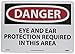 - Visibility: the sign has the legend “DANGER - EYE AND EAR PROTECTION REQUIRED IN THIS AREA” in clear, bold letters to ensure clear visibility even from a distance