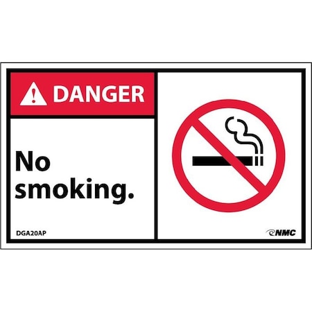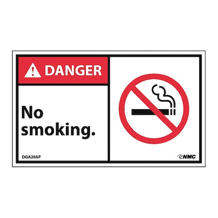 NMC DGA20AP 3"x 5"ANSI Sign w/Legend:Danger - No Smoking (Graphic), 25 Packs of 5 pcs