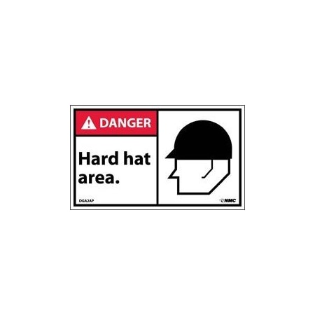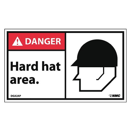 NMC DGA2AP ANSI Sign, Legend "DANGER - Hard hat area" with Graphic, 5" Length x 3" Height, Pressure Sensitive Vinyl, Black/Red on White (Pack of 5)