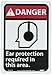 | Feature | Header "DANGER" and legend "Ear protection required in this area." with graphic |