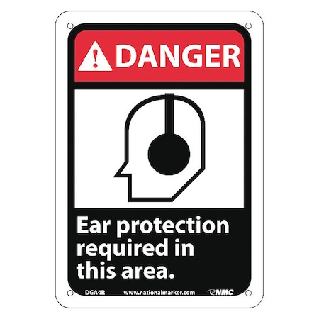 NMC DGA4R 10"x 7"ANSI Sign w/Legend:Danger - Ear Protection Required In This Area (w/Graphic), Pack of 50 pcs