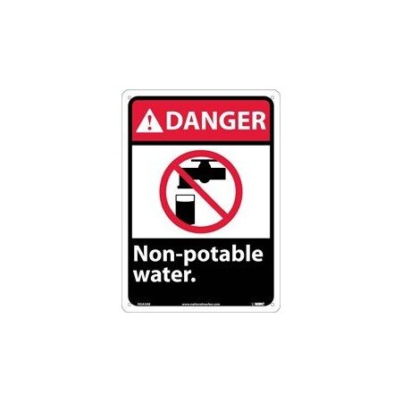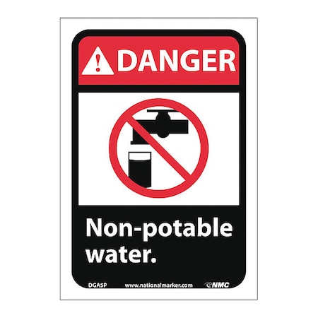 NMC DGA5P ANSI Sign, Legend "DANGER - Non potable water" with Graphic, 7" Length x 10" Height, Pressure Sensitive Vinyl, Black/Red on White