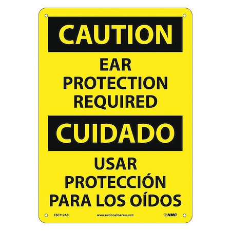 NMC ESC712AB Bilingual OSHA Sign, Legend "CAUTION - EAR PROTECTION REQUIRED", 10" Length x 14" Height, 0.040 Aluminum, Black On Yellow