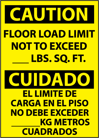 - Header "CAUTION" and Legend "FLOOR LOAD LIMIT NOT TO EXCEED ___ LBS. SQ. FT."