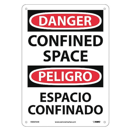 NMC ESD670AB Bilingual OSHA Sign, Legend "DANGER - CONFINED SPACE", 10" Length x 14" Height, 0.040 Aluminum, Black/Red on White