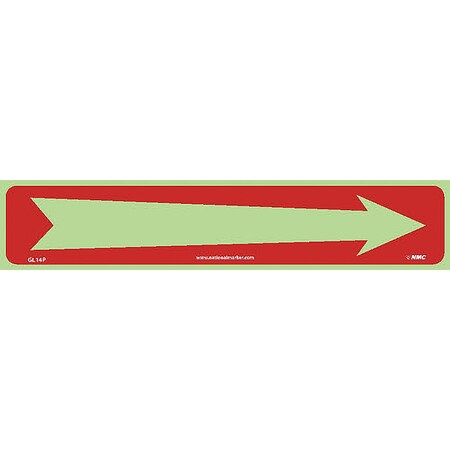NMC GL14P Fire Arrow Sign, 10" Length x 2" Height, Glow Polyester, Red on Yellow
