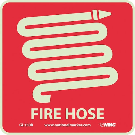 NMC GL150R Graphic See Sign, Legend "FIRE HOSE", 7" Length x 7" Height, Glow Rigid, Red on Yellow