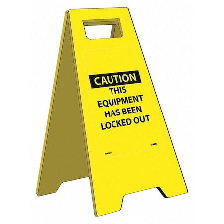 NMC HDFS211 Heavy Duty Floor Stand Sign, Legend "CAUTION - THIS EQUIPMENT HAS BEEN LOCKED OUT", 10-3/4" Length x 24-5/8" Height, Black on Yellow