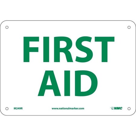NMC M249R Exit/Entrance Sign, Legend "FIRST AID", 10" Length x 7" Height, Rigid Plastic, Green on White