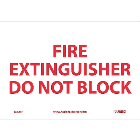 NMC M421P Restricted Area Sign, Legend "FIRE EXTINGUISHER DO NOT BLOCK", 10" Length x 7" Height, Pressure Sensitive Vinyl, Red on White