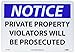 | Feature | Header "NOTICE" and Legend "PRIVATE PROPERTY VIOLATORS WILL BE PROSECUTED" |