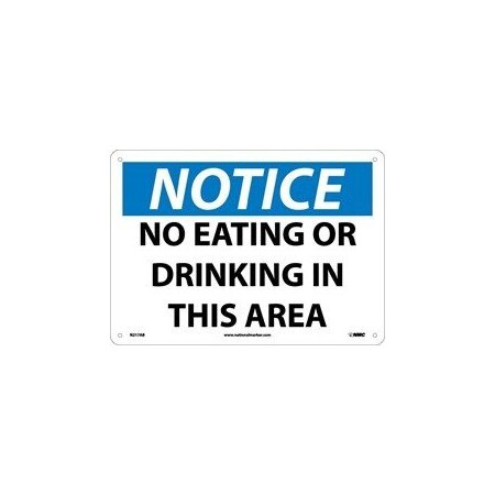 NMC N217RB OSHA Sign, Legend "NOTICE - NO EATING OR DRINKING IN THIS AREA", 14" Length x 10" Height, Rigid Plastic, Black/Blue on White