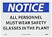 Notice All Personnel Must Wear Safety Glasses Sign
