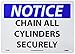 NMC N249RB OSHA Sign, Legend "NOTICE - CHAIN ALL CYLINDERS SECURELY", 14" Length x 10" Height, Rigid Plastic, Black/Blue on White