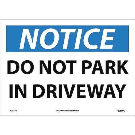 NMC N257PB OSHA Sign, Legend "NOTICE - DO NOT PARK IN DRIVEWAY", 14" Length x 10" Height, Pressure Sensitive Vinyl, Black/Blue on White