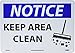 - Header "NOTICE" and Legend "KEEP AREA CLEAN" with Graphic